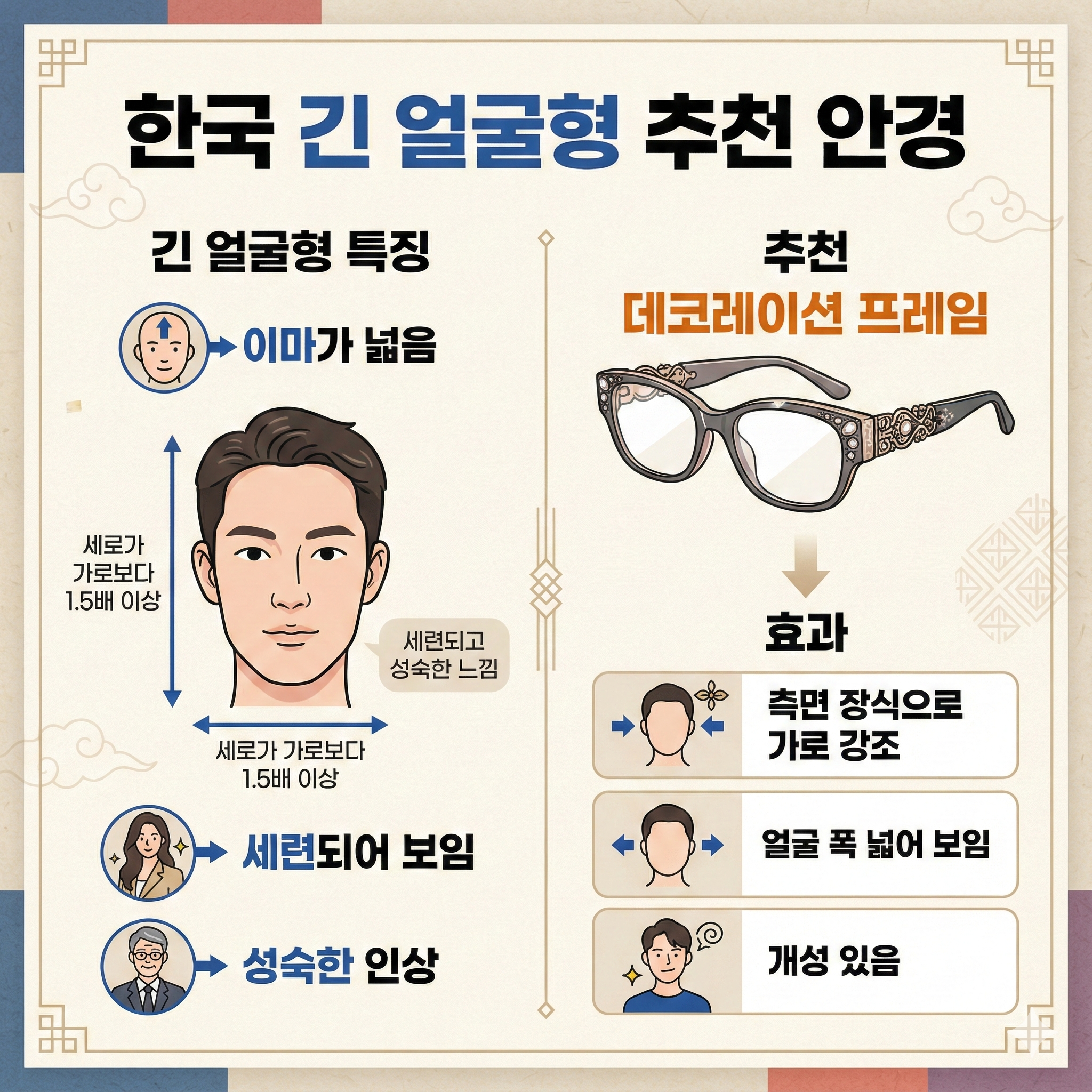 긴 얼굴 → 가로로 넓은 안경