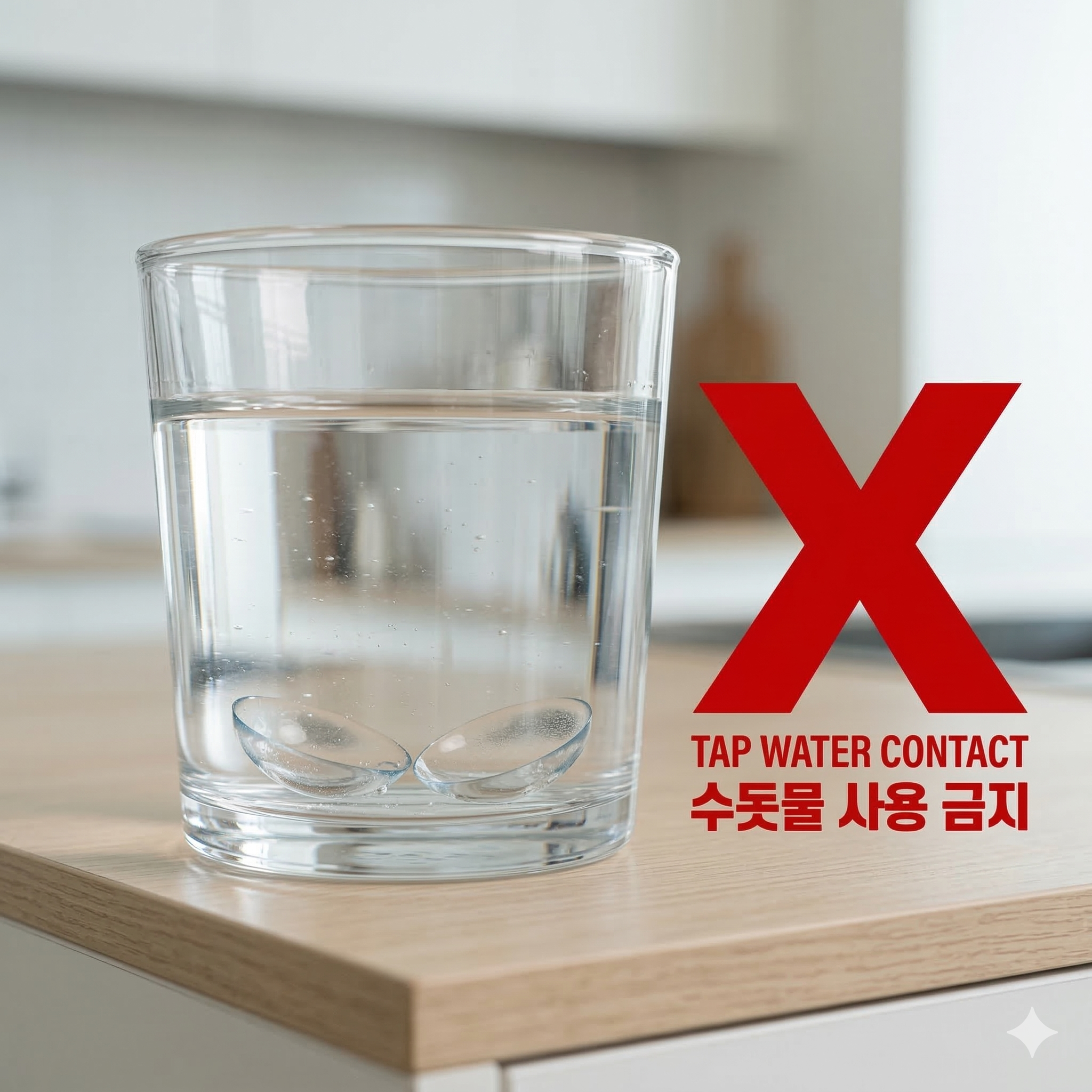 물속에는 눈에 보이지 않는 미생물이나 오염원이 있을 수 있고, 이런 성분이 렌즈 표면에 붙으면 눈에 자극이나 감염 위험을 높일 수 있습니다.
